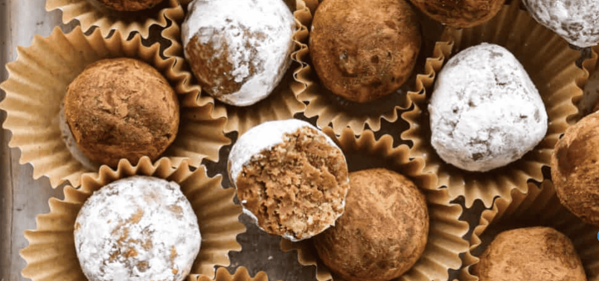 - Scoop the Balls/ Coat the Balls: Scoop out tablespoons of dough and roll into balls. To coat the balls, add powdered sugar or cocoa powder in a small sheet pan or pie dish. Add the balls and shake gently until completely coated.