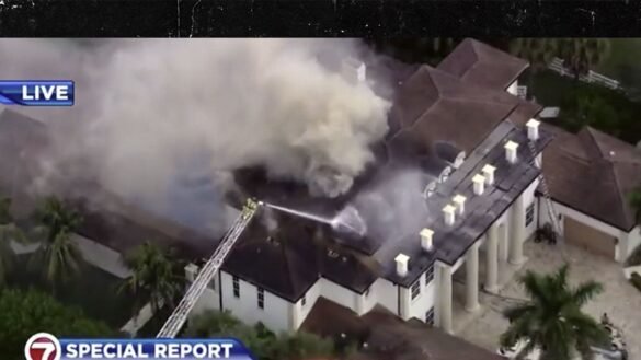 The Dolphins star — wearing a white T-shirt, sweats and a boot to protect his injured ankle — looked concerned as he watched firefighters put out the blaze.