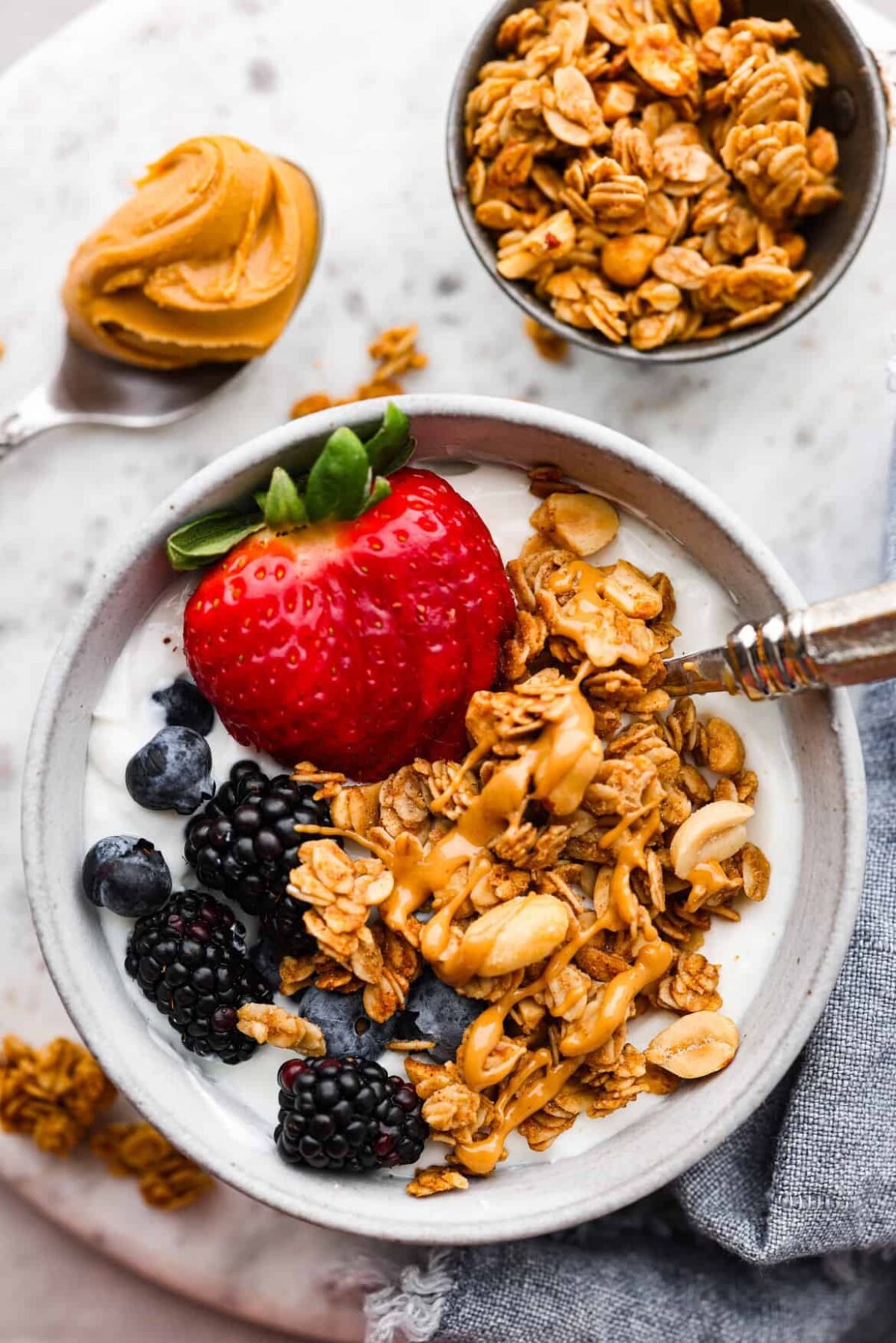 It’s the most important meal of the day, so fuel up with this amazing peanut butter granola! And if you’re looking for more great breakfast recipes to switch things up with, try overnight oats, homemade oatmeal, or acai bowls!