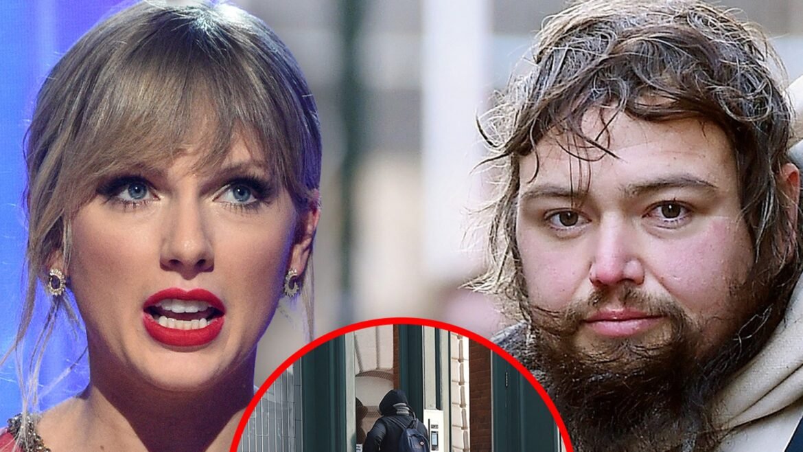 Whether he knew it was Taylor’s crib or not is anybody’s guess, but we’ve obtained photos of the guy standing right outside the front door of her building. Creepy!!!