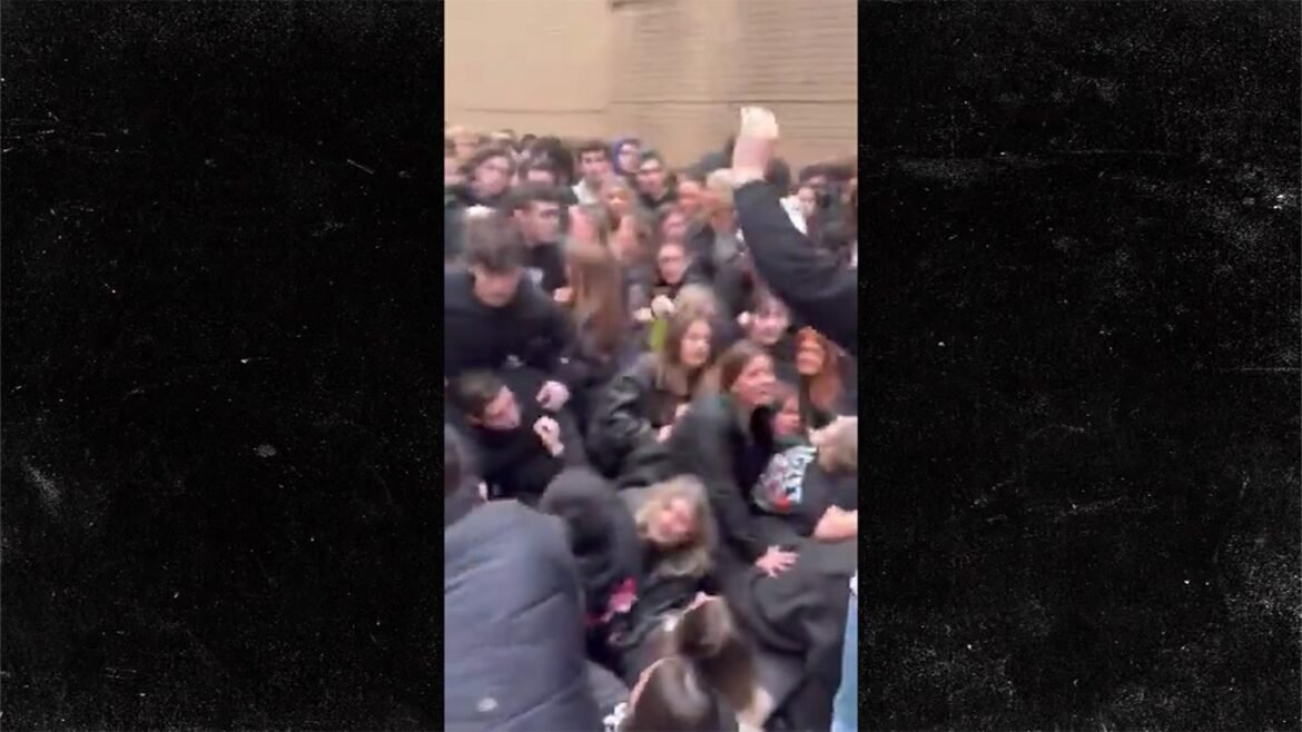 It’s a tense scene … with security screaming at students to stop pushing and shoving a couple students away from those who fell — the person taking the video didn’t come away unscathed either, tilting the camera down to reveal their shoes were taken off in the melee.