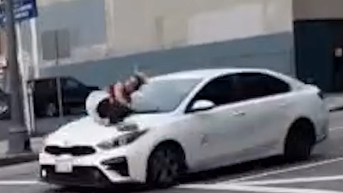 The driver took off, knocking Ali onto the hood of the speeding vehicle, while she clung on for dear life.