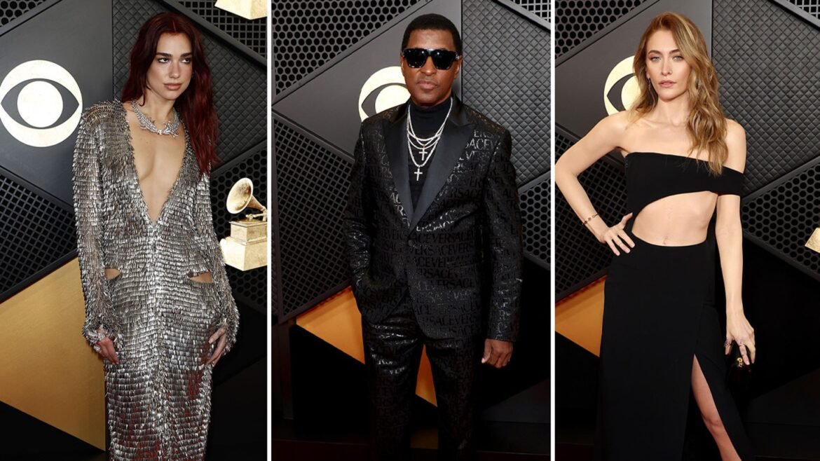 Dua Lipa’s there in a low-cut silver gown and fiery hair that’s matching the vaunted red carpet while Babyface rolled up in a svelte black suit — sunglasses on. And music royalty Paris Jackson went with a gorgeous black gown too.