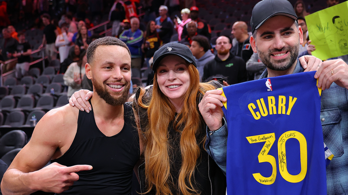 Steph gifted Lindsay Lohan and her husband his jersey from tonight’s game after dropping 60 🎁 pic.twitter.com/5BQykjm2Jm