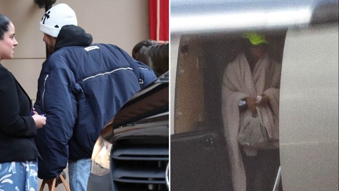 Big reveal at the hotel though … because a man in a huge puffy coat, white beanie decorated with a black palm tree, and blue jeans on — and with style choices like those this could only be Justin Bieber!!!
