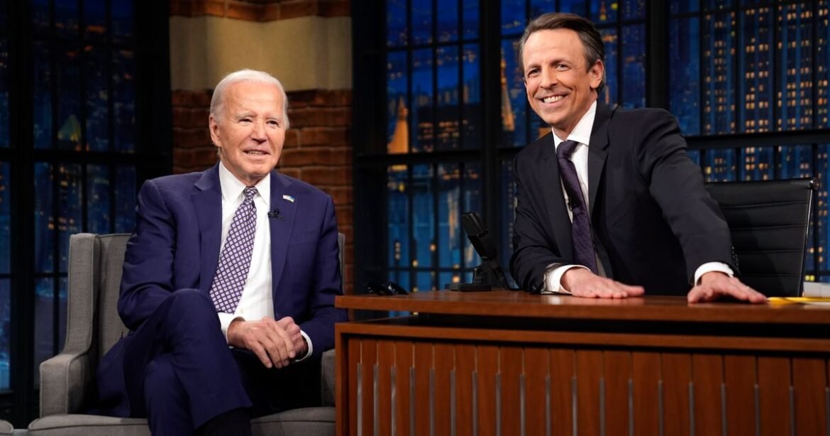 Joe Biden swung by Late Night With Seth Meyers on Monday night, ostensibly to celebrate the show’s tenth anniversary but actually to demonstrate that he’s not way too old to be president for another four years.