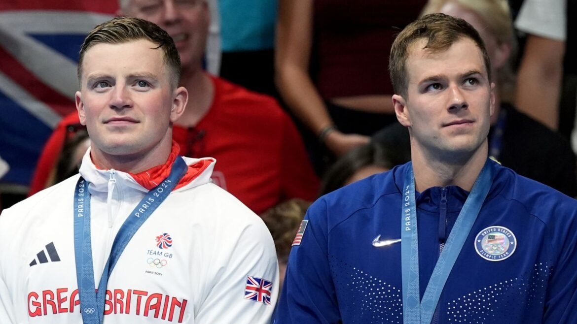 His time of 59.03 seconds was two hundredths of a second quicker than Peaty, who touched the wall at the same time as America’s Nic Fink, meaning they will share the silver medal.