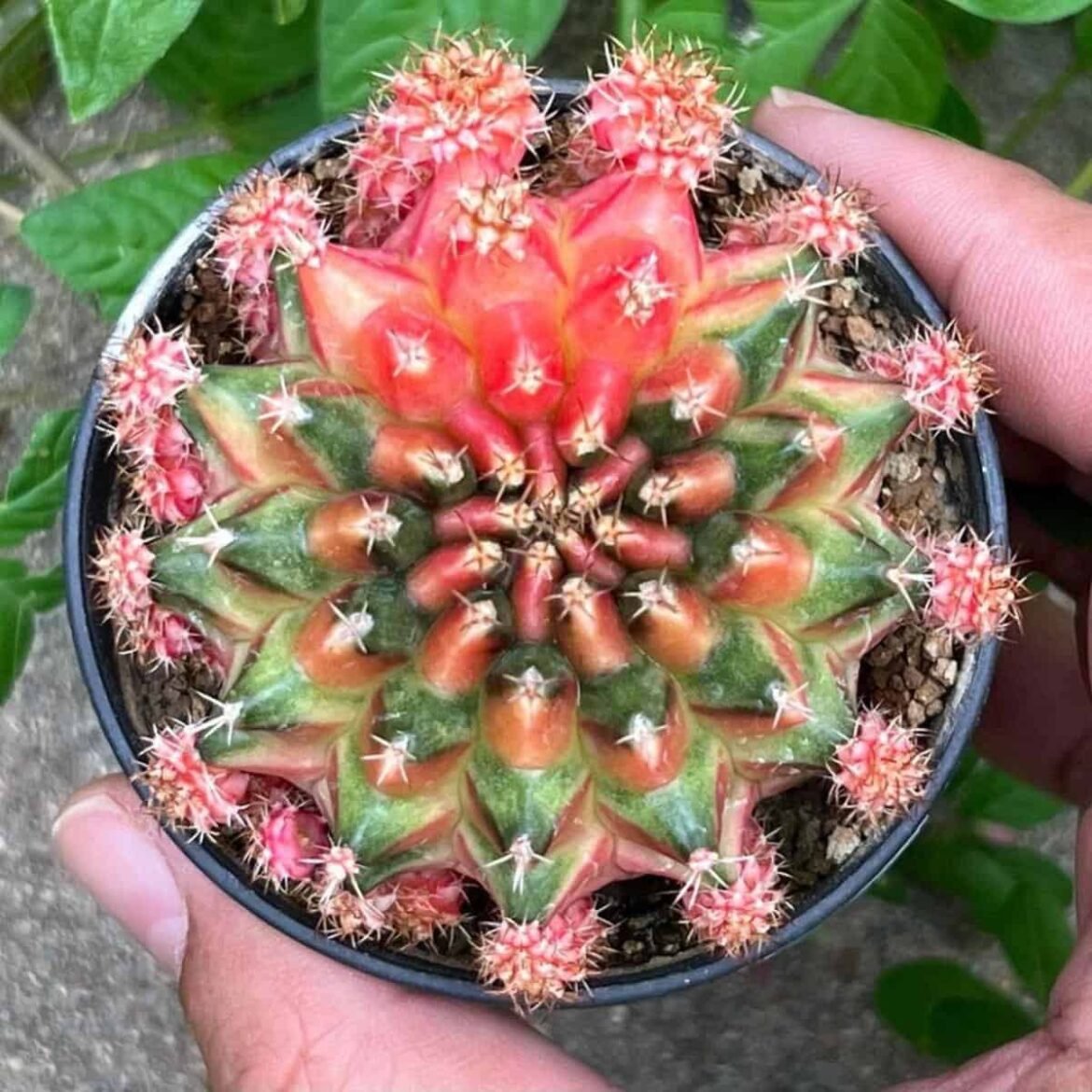 • Moon Cactus (Hibotan Cactus): Often grafted onto another cactus to thrive, this variant comes in bright red, yellow, orange, or even purple shades. The colorful top contrasts beautifully with the green base.