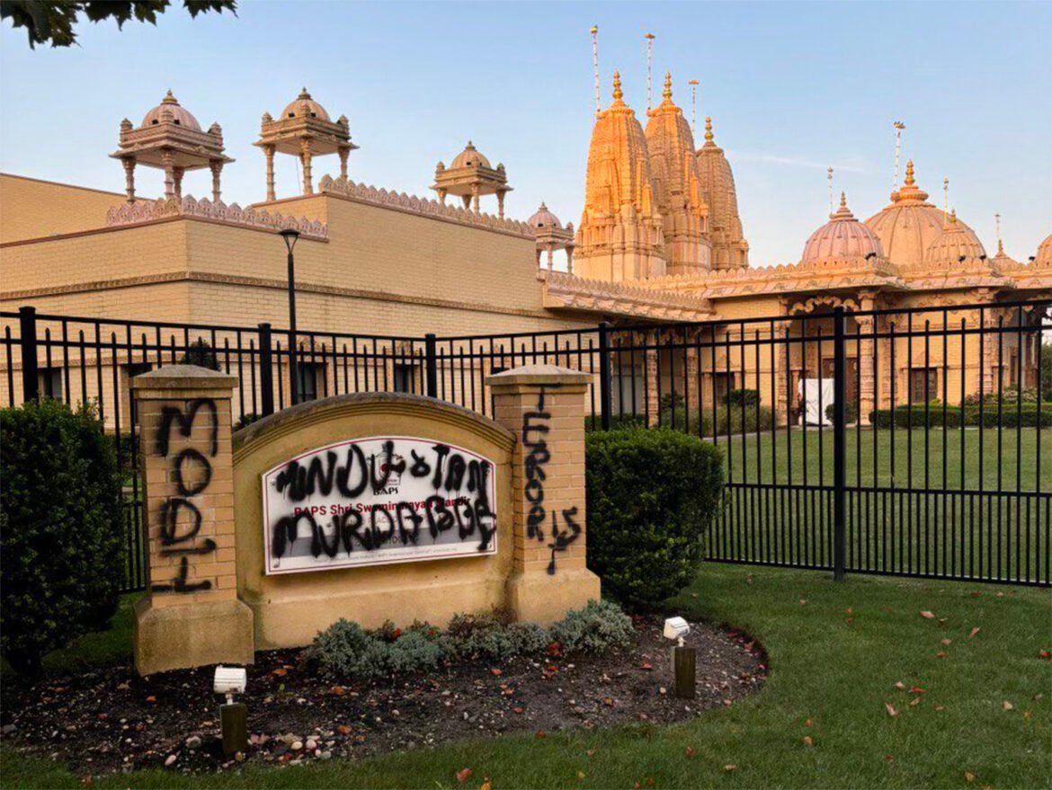 Early Monday (Sept. 16), that peace was interrupted with the discovery of graffiti spray-painted on the temple’s signage and driveway that read “Hindustan Murdabad,” meaning “Death to India,” “F*ck Modi” and “Modi is a terrorist,” referring to the Indian prime minister scheduled to visit on Sunday.