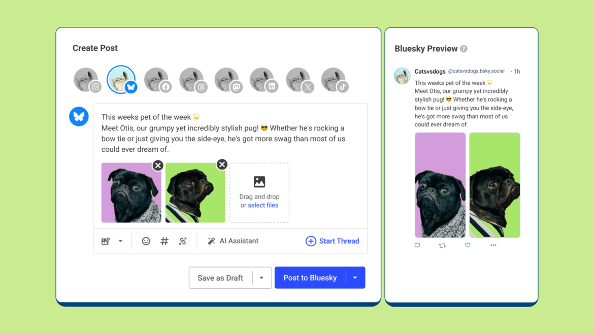 - Notes and tags: Add notes or tags to any post — drafts, scheduled, or already sent — to keep things organized.