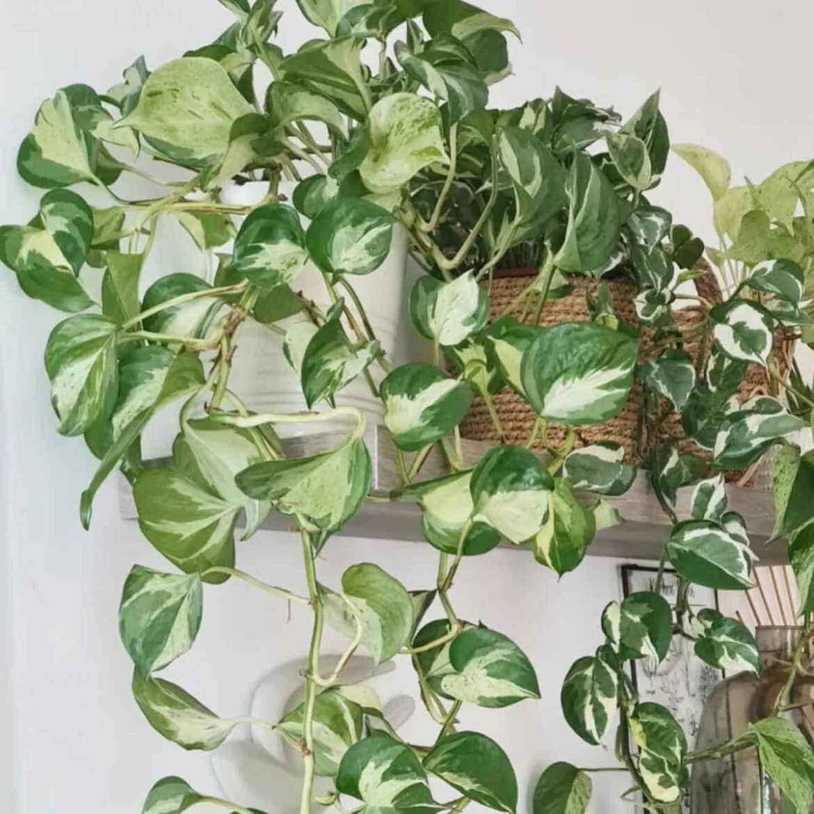 Pothos plants add a natural, stylish element to any room. Their trailing vines can be trained to grow along shelves or walls, creating living art.