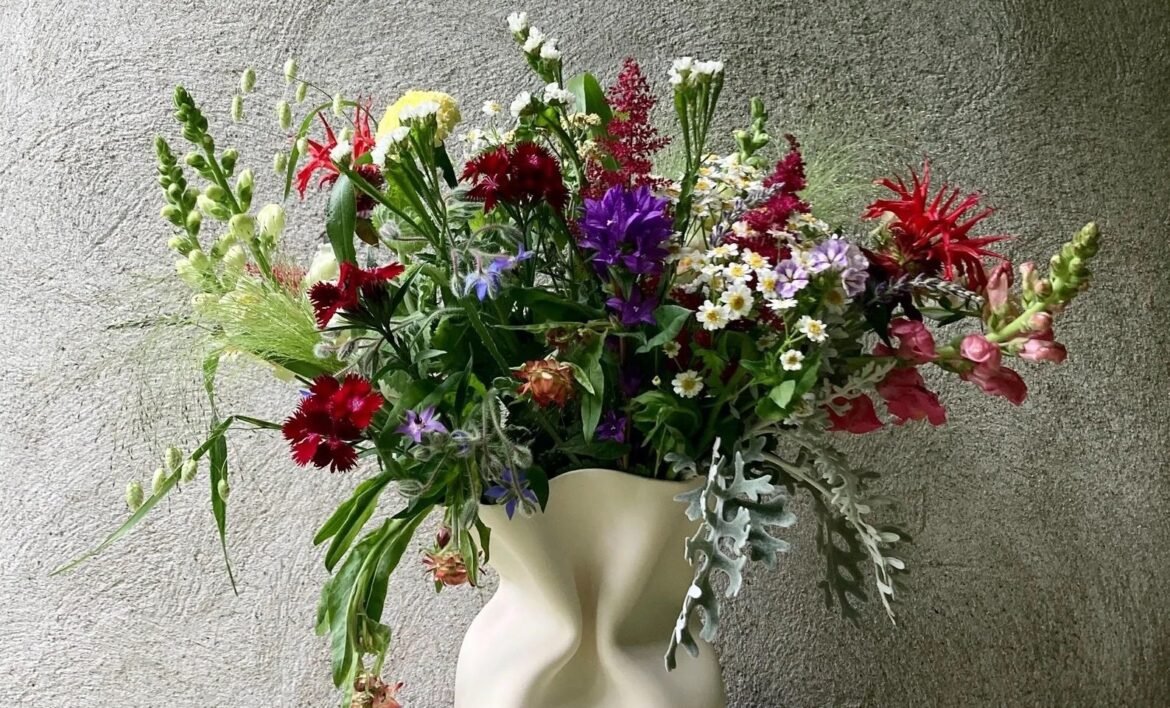 (Vase, at top, by ALICJACERAMICS. Star floor decals via Abbey; quilted jacket via Kim; linen top via Erika)