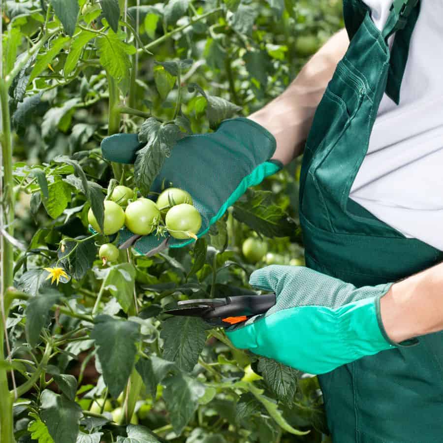 - Garden gloves to protect from the tomato plant’s sticky, irritating sap