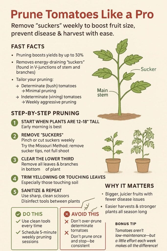 Most people make this mistake with their tomatoes: they prune once and forget about it. For truly vibrant, productive plants, make pruning a 5-minute weekly ritual throughout the growing season.