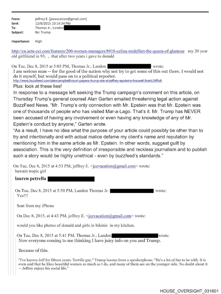 The journalist then seemed to urge Epstein to go public about his relationship with Trump, highlighting a statement from the Trump campaign to BuzzFeed denying their connection. “I am serious man – for the good of the nation why not try to get some of this out there. I would not do it myself, but would pass on to a political reporter.”