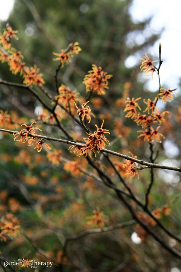 Its base is a dense, multi-stemmed trunk that twists decoratively and creates a lovely ornamental structure. Hardy in zones 5-8, witch hazels bring gorgeous colour to the fall and winter garden. The flowers bloom can be found blooming near me (in the Pacific Northwest) in January, but you may smell the spicy, citrusy scent first! Witch hazel is easy to grow and care for if you follow these simple steps.