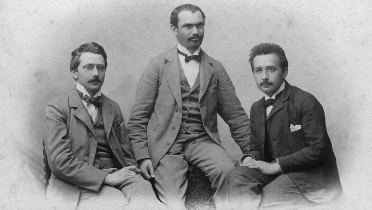 Einstein, contrary to the popular narrative, wasn’t a lone genius, but rather only achieved the successes that he did because of his friends, colleagues, professors, and the larger community of physicists, astronomers, and mathematicians that he was a part of. Without them, including his study-buddy friends Conrad Habicht and Maurice Solovine, pictured alongside him in 1903, his ideas, brilliant as they were, would likely have gone nowhere. (Credit: Emil Vollenweider und Sohn/Public Domain)